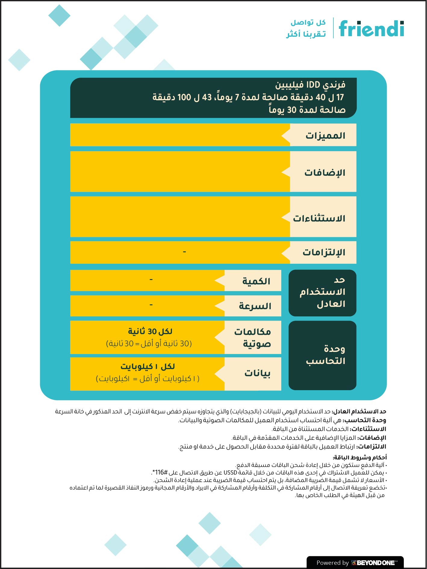 | 300 ريال | 345ريال | 100جيجابايت | لا محدودة | 1500 | الهند - بنجلاديش - باكستان - الفلبين - نيبال | 90 أيام |